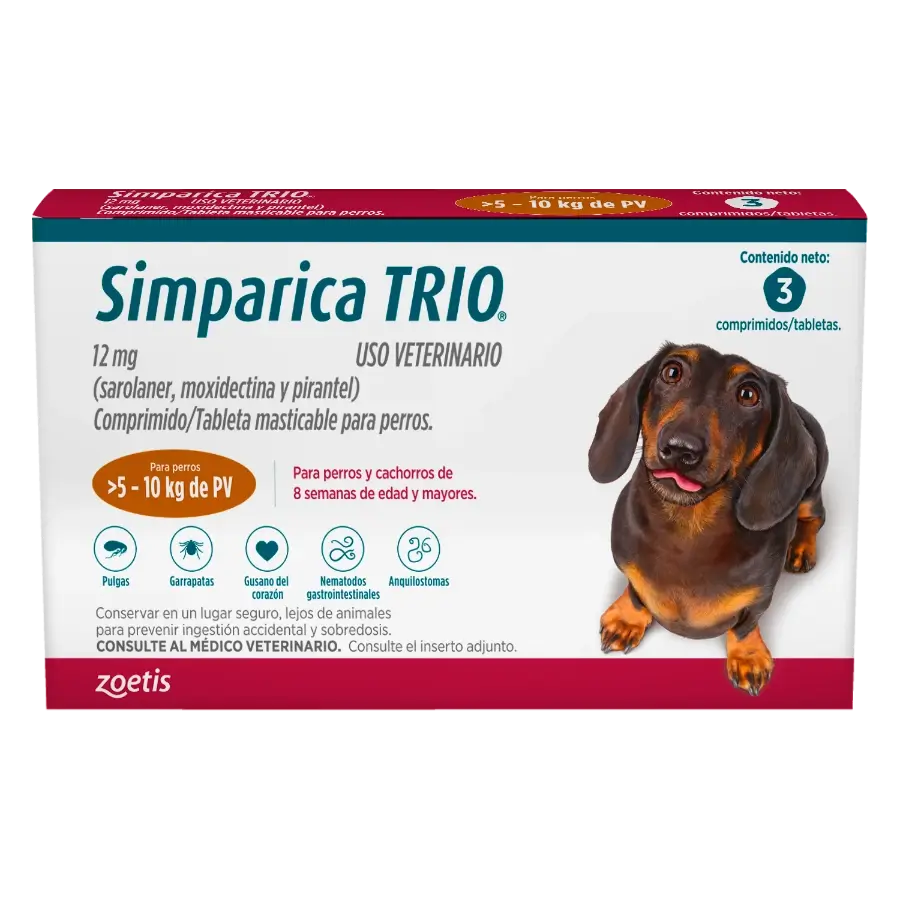 Antipulgas para perros Simparica Trio de 5 a 10 kilos x 3tab